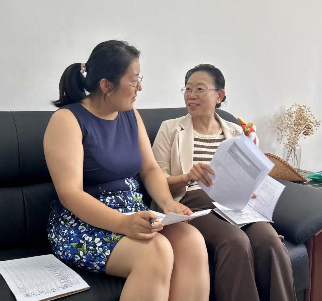 课后,柴改英与郁伟伟进行了亲切而深入的交流,她对任课教师的专业素养、翻转课堂的授课模式以及将最新语料库引入课堂教学的做法予以充分肯定,并就课程内容的进一步优化与深化提出了建设性意见。