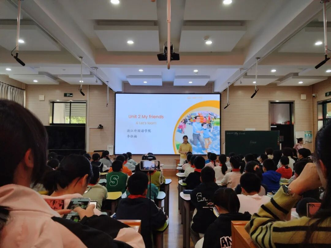 10月22日,为助力英语师范生深化对新课标、新教材的教学认知,在英文学院英语教育系刘懿教授牵头、竞舟小学英语组统筹组织下,外语教育系教师陈伦菊、方艳菲,区域国别与商务英语系教师白天依等带领24级英语(师范)学生走进杭州市竞舟小学,开展“高校小学合作,共探英语新教材”课例共生教学交流活动,此活动乃英文学院实践周系列活动的关键一环。