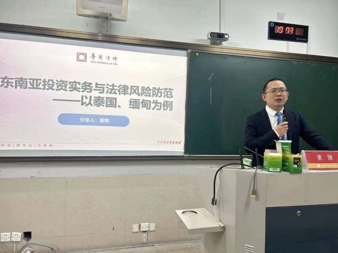 11月6日上午,浙江外国语学院博达论坛第1072讲暨英文同文讲坛第123讲顺利举行。本次讲座以“东南亚投资实务与法律风险防范”为主题,特邀华商(杭州)律师事务所主任董锋律师担任主讲,华商(杭州)律师事务所汪江连律师、英文学院学术副院长赵歆以及2023级商务英语专业全体学生参加。