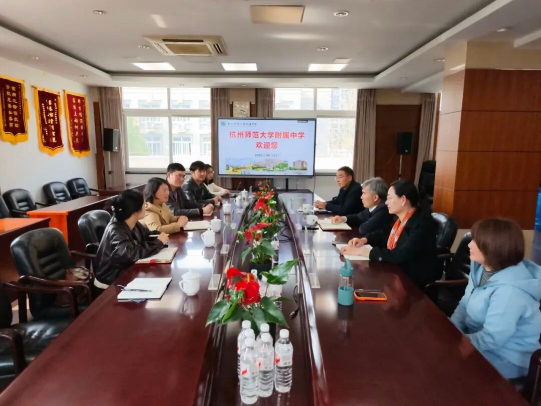 为破解首届学科教学(英语)硕士培养中的实践短板,精准对接高中教师招聘新趋势,近日,英文学院院长刘懿一行赴杭州师范大学附属中学开展专题调研。杭师大附中教育集团党委书记陈伟浓、校长周燕、教学处副主任叶文建和英语教研组长汪向华热情接待,英文学院党委副书记杜光、翻译传播系教师孙淑女、学工办负责人顾蒙及研究生代表金辉、钱佳浩参与座谈。