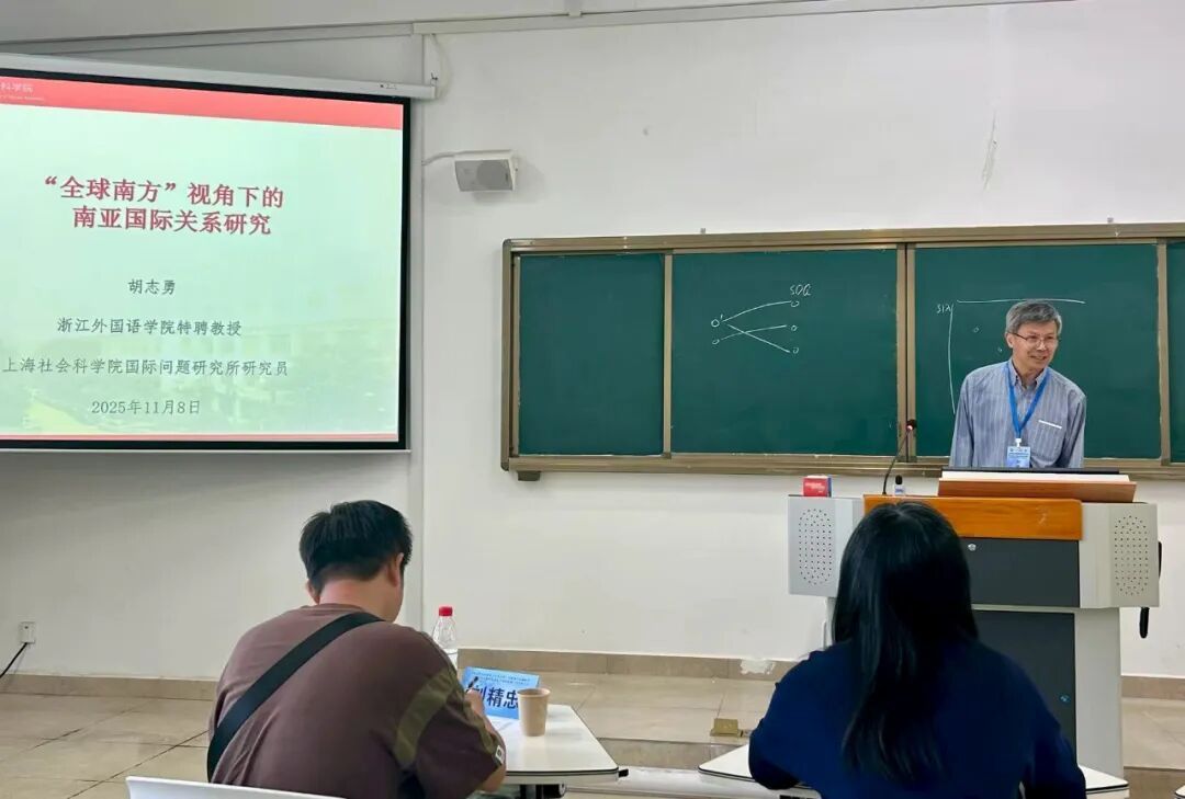 在大会的主题发言环节,专家学者们围绕核心议题进行了深度阐述与热烈交流。胡志勇作了题为《全球南方视角下的南亚国际关系发展》的精彩发言。他从全球南方整体崛起的宏观背景出发,深入剖析了南亚地区国际关系的新动态、新格局与发展趋势,强调了南亚地区在全球南方阵营中的关键地位以及其内部合作与外部联系的复杂性。