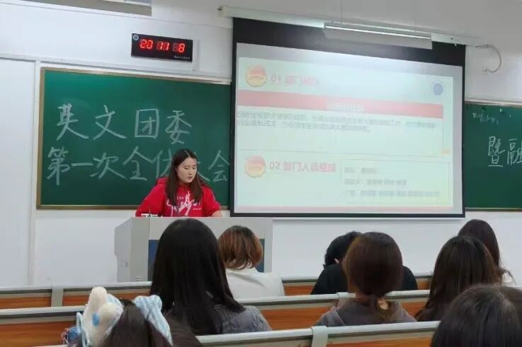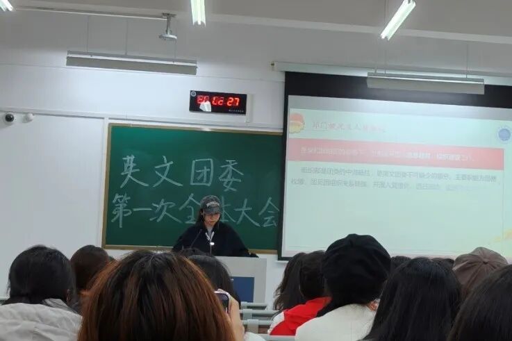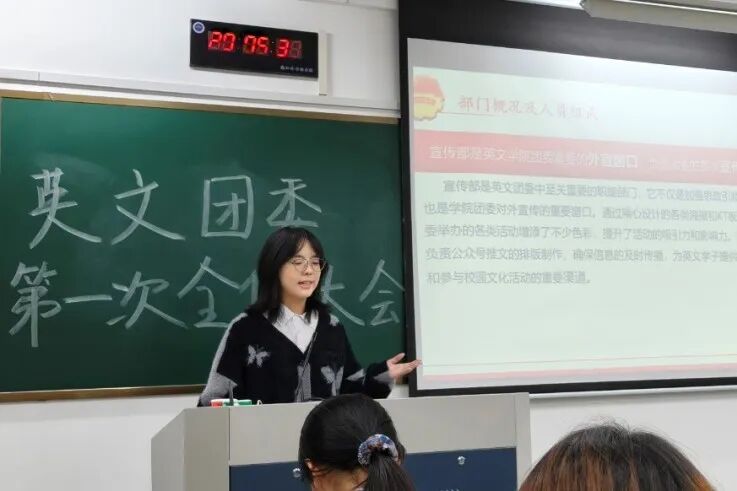 李仪婷首先简要介绍了共青团浙江外国语学院英语语言文化学院委员会,并通过组织架构图的展示,帮助大一新生快速建立对英文学院团委的整体认知,为后续工作奠定了良好基础。