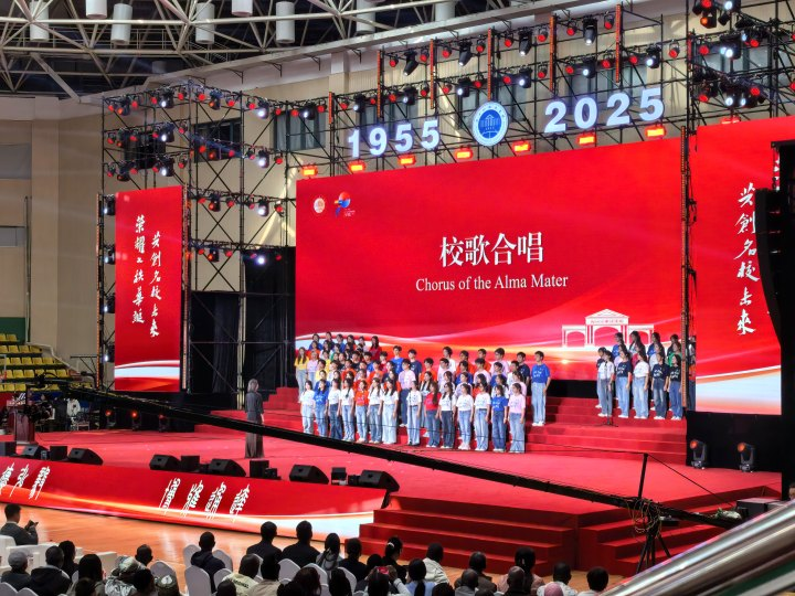 身处其中的归属感,在不久前校庆的合唱上共鸣。当聚光灯亮起,我与台上的同学们齐声唱响校歌,那些清丽动人而真挚的歌词,第一次如此清晰而坚定地流进心底。那一刻我明白,生命中最珍贵的抵达,不是奔赴看似早已预定的远方,而是成为某个和声里不可或缺的音符。