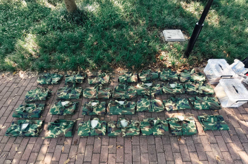 分散的迷彩个体迅速汇聚成一幅整齐的拼图