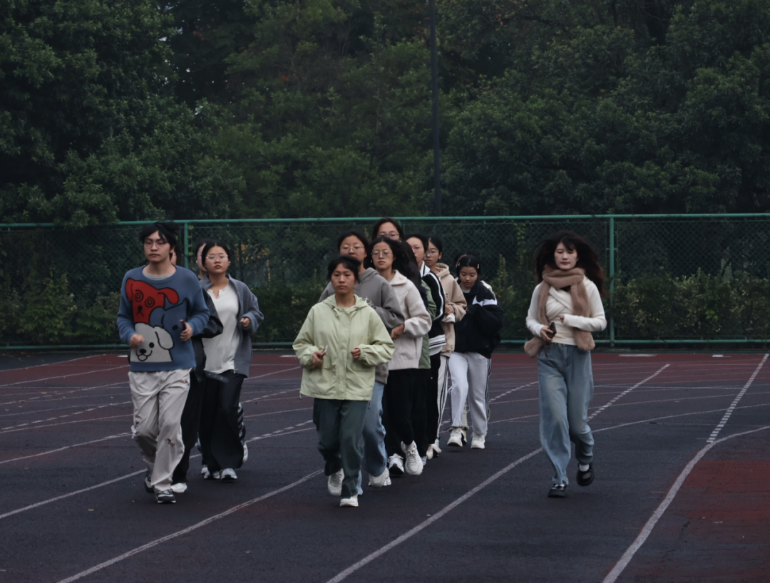 英文学院副院长、晨跑队领跑老师郑淑贞同样深有感触。她表示,从第一次集结到如今整齐的脚步声回荡在操场,每周二清晨与同学们并肩奔跑,早已成为她一周中最期待的温暖时刻。这不仅是体能的锻炼,更是一场师生同行、彼此激励的成长旅程。她愿始终做那个陪大家迎着朝阳出发的人——用脚步丈量青春,用汗水浇灌自律。看到越来越多同学主动加入、坚定坚持,她感到由衷欣慰,并希望最强“英“晨跑队不止于跑步,更成为一种精神象征:坚韧、阳光、永不言弃!
