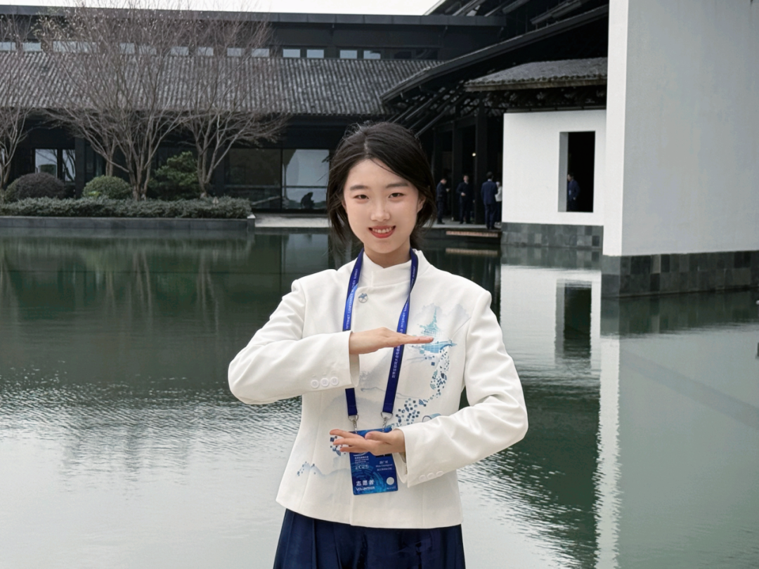 她的专业实践同样丰富多彩。曾作为主讲人出镜浙江日报“探美浙江”双语栏目;在小古城村拍摄的思政微课视频获潮新闻报道;也曾主持北京大学、浙江大学及我校留学生的4场交流会,在专业表达与跨文化沟通中不断提升自我。