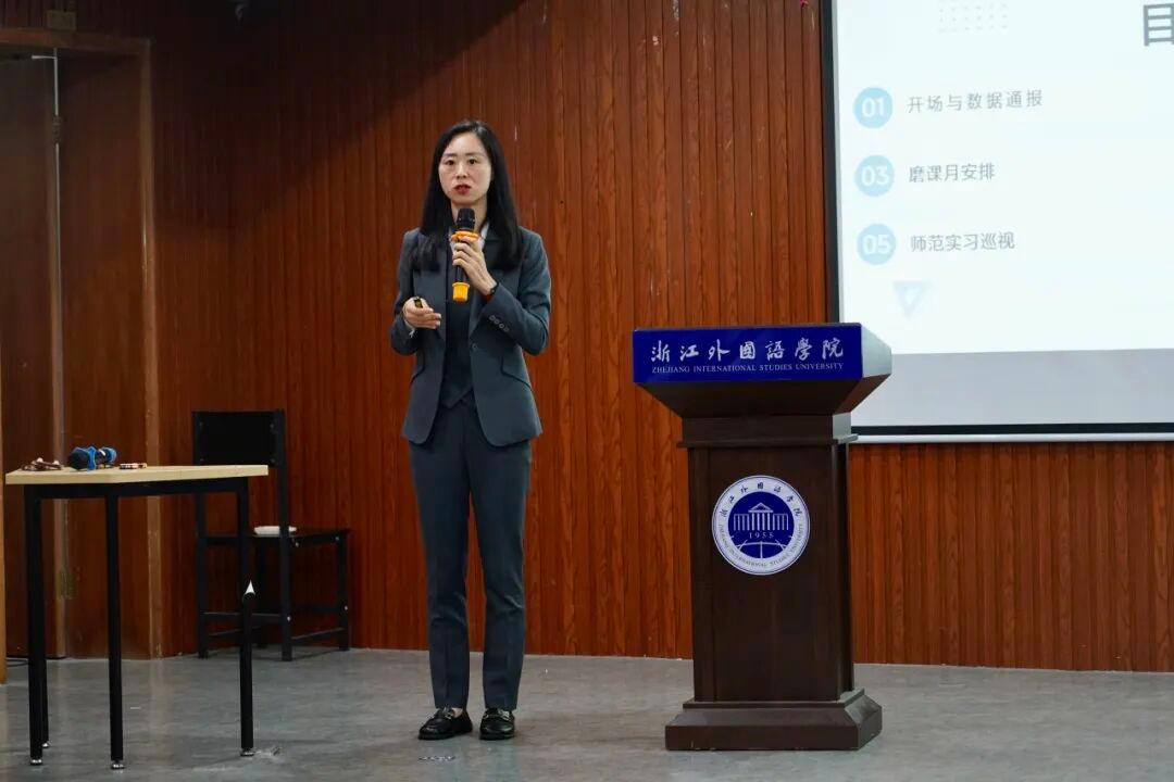 外语教育系教师童红灯作为专业教师给学生们作学业指导,他就实习与就业准备提醒同学“全面了解信息,提前思考细节”,合理规划考研、留学、考公等发展路径。