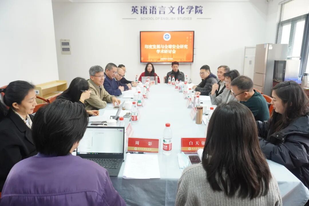 近日,英文学院举办“印度发展与全球安全研究”暨新型国际关系高等研究院2025年度重大项目开题报告学术研讨会。云南省社会科学院副院长、研究员陈利君,华中科技大学法学院教授邓烈,北京大学国际关系学院副教授韩华,云南省社会科学院南亚研究所所长、研究员和红梅,西安交通大学副教授李家胜,郑州大学特聘教授随新民等校外专家代表受邀出席会议。浙江外国语学院科研处副处长沈旭炜,英文学院、国际商学院等学院负责人、教师代表等参加会议。