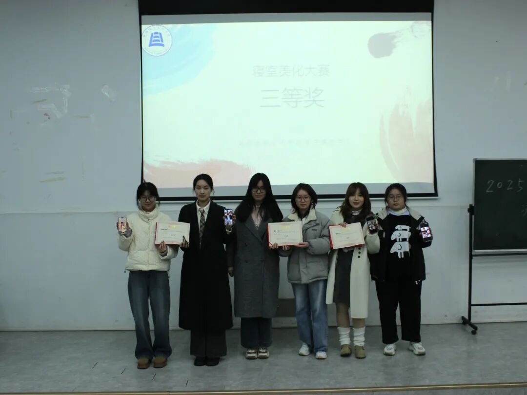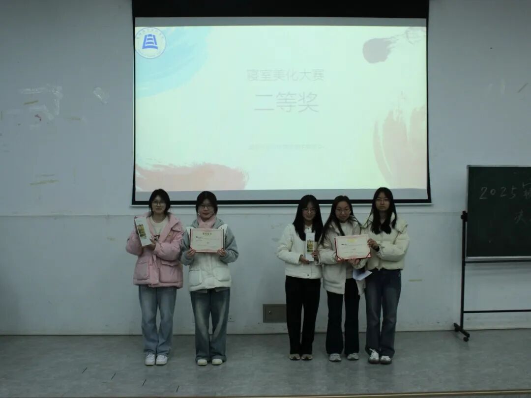 美好生活 尽显于“室” -英文学院寝室美化大赛成果展示- 四季轮转,时光如诗 我们为“家”打造的惊喜,也迎来了最终篇章 从初赛收下生活的巧思 到决赛集满文化的灵感 现在 请查收这份诚意满满的决赛风采“大片” 01.宿舍介绍 一等奖 雅致4-128 推开128的门,布置简约却不乏巧思 温馨舒适的居住感顷刻包裹着身心 玩偶与绿植吐露着温柔的日常心意 见证着我们朝夕相处的欢愉与岁岁年年 二等奖 雅仪5-316 雅仪5-110 寝室生活如同一部流动的温暖剧集 夜深灯暖时,细语在床帘间悄悄传递 白日明朗处,欢笑在阳光中轻轻跳跃 我们在这片小天地写下独属青春的诗句 也在相伴时光里读懂友谊柔软的意义 三等奖 雅仪5-205 雅仪1-603 雅致2-414 忙碌之时这里便切换成静音模式 有人戴着耳机默写单词,笔尖如细雨沙沙 有人对着镜子练习演讲,神情如正式登场 每个沉浸的时分都在为未来铺展道路 每阵轻轻的翻书声都是梦想静静发芽 优胜奖 雅致4-109 雅仪5-302 雅致4-121 雅致4-112 雅致4-124 雅正7-104 雅致4-111 02.寝室风采展示 恭喜以上寝室获奖 “寝”系时光,“宿”写年华 愿我们始终怀抱对生活的热忱 让独特的寝室文化继续生长 让这方小小天地 永远盛放友谊的芬芳,延续青春的温度