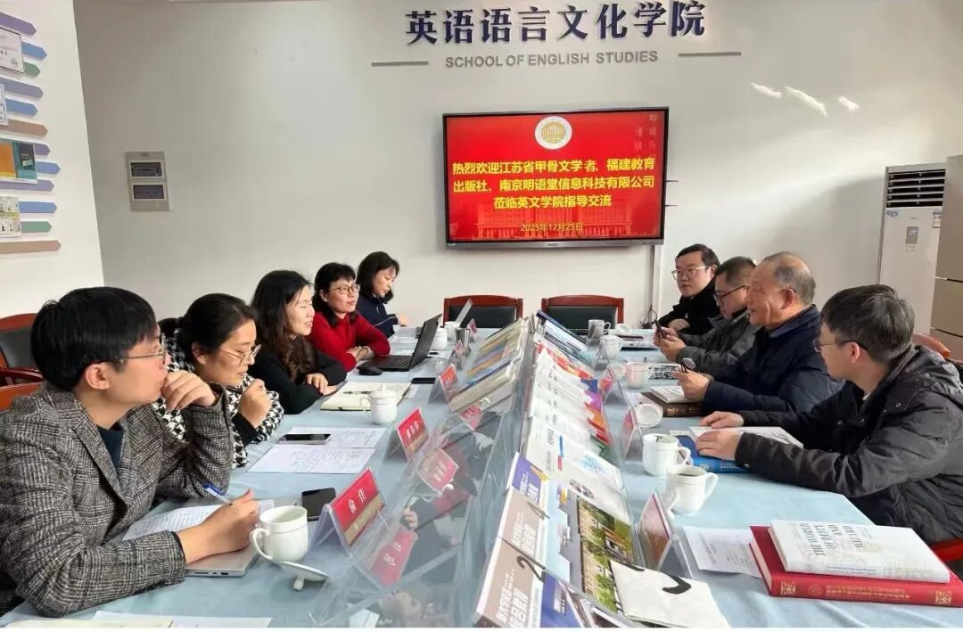 会上,英文学院与福建教育出版社就甲骨文图书海外授权事宜进行了深入协商。双方计划进一步拓展图书的小语种版本,组织申报“中华学术外译”相关课题,并协作建设多语种甲骨文语料库,借力“一带一路”倡议开展跨领域合作传播。英文学院表示,将积极联合多方力量,共同推进老学者甲骨文研究成果的保护工作,加强青年人才培养,持续推动甲骨文学科体系完善与后备人才队伍建设。