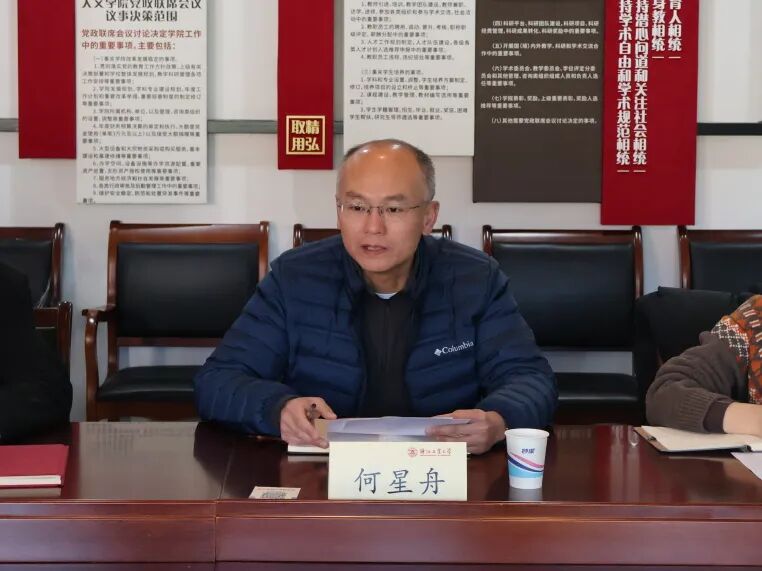 浙江工业大学人文学院院长张晓玥,党委书记何星舟,副院长罗慕君、姚利权,党委副书记徐小芸,团委书记徐梓俊,辅导员王静、项润栊等对学院一行的到来表示热烈欢迎。