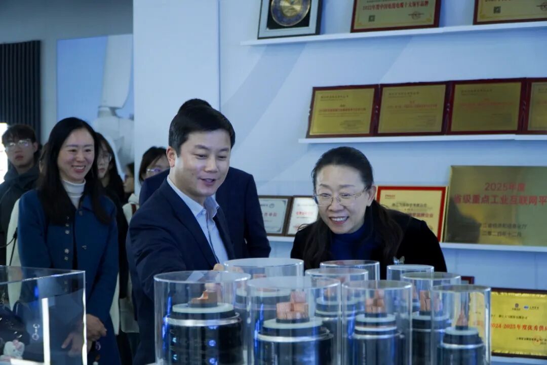 学院一行首先参观了万马创新园展厅,全面了解了万马股份以“正人正事正品”为核心价值观的发展历程,及其在新智造、新材料、新能源三大主业的产业布局与技术创新。公司业务覆盖全球,其广阔的国际化前景与我校外语类人才的培养目标高度契合。