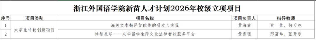本次获批的5项项目紧扣外语学科,聚焦社会需求与行业发展,覆盖了大模型赋能课堂教学、数字技术提升跨文化交际、中国式现代化国际叙事、智能翻译技术应用以及跨文化法律服务等多个重点领域。项目充分展现了同学们对学术前沿的敏锐洞察和对社会发展的热切关注,也彰显了指导教师团队扎实的专业素养与深厚的科研根基。