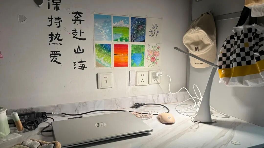 一隅天地,蕴浙外学子万卷风华。于柜门上,消防用电的温馨贴士筑牢安全防线。方寸桌前,英文单词、学习目标彰显逐梦轨迹,张张旧照片又将过往温暖回忆珍藏于心。我们在方寸寝室里,洋溢着独属