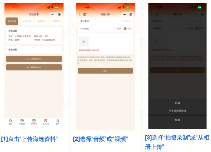 团报:团报选手除上传/录制海选材料外,还可选择备案语言类活动证书。
