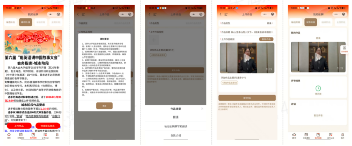 选手撰写地方短篇故事并朗读,须围绕中国元素展开创作内容(“故事主体”不是选手个人、“地方”以选手高校所在地为主、“中国元素”包含且不限于中国风物、习俗、人物、成就、艺术和精神)