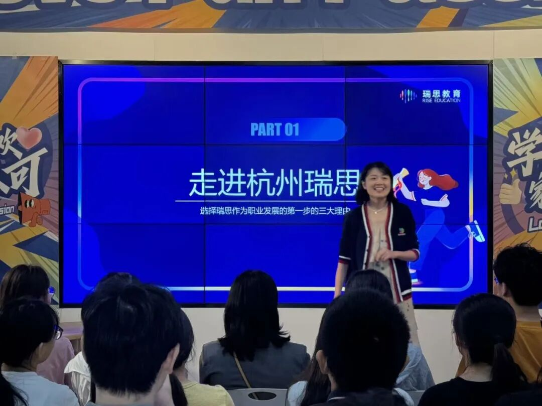 在瑞思教育深耕近七年的19届翻译专业校友刘君妃,进行了关于职业选择、大学经历积累与个人成长路径的深度分享,建议学生通过实践探索兴趣、主动思考、发挥优势、敢于突破,逐步在个人专业或职业领域持续发展。她提醒学生避开求职常见误区,不盲从亲友推荐而缺乏自主调研,不只看薪资忽视平台成长路径与发展适配性。她也指出,职业选择如同选修课,需兼顾兴趣、擅长性与成长性。她从教学小白起步,经师傅带教成长为小组长、校区负责人,再转向培训师与课程研发,依托公司体系实现角色升级,验证了瑞思“看得见的成长路径”的吸引力。