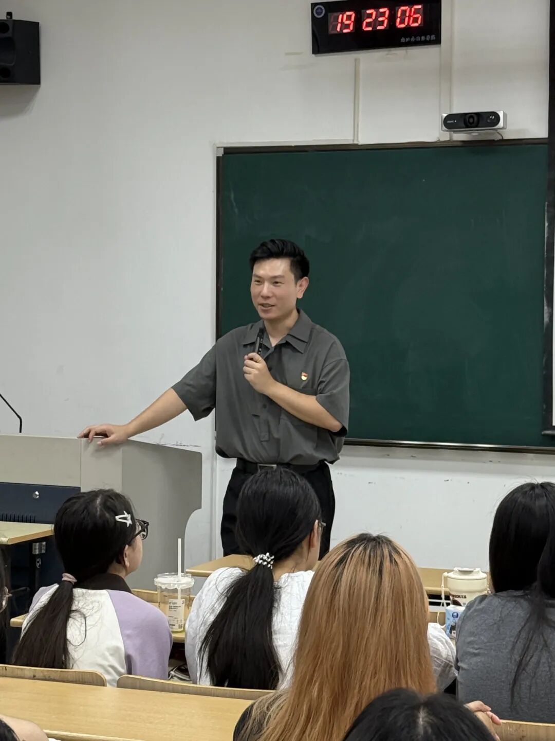 刘轩铄从学风建设、宿舍安全、防范诈骗等方面入手,结合《学生手册》相关制度与常见的学生违纪案例对2025级新生进行规则意识教育。