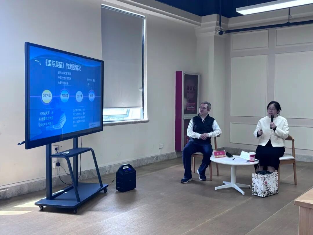 近日,由科研处主办、英文学院承办的 “Coffee Time:与主编面对面”系列博达沙龙第二期,在弘文馆4楼D区艺术主题书库顺利举行。本次沙龙特邀《国际展望》常务副主编、编辑部主任石晨霞作专题分享,围绕“《国际展望》的期刊定位与选题用稿要求”展开深度解读。沙龙由英文学院特聘教授、城市国际化研究院院长陈溪主持。