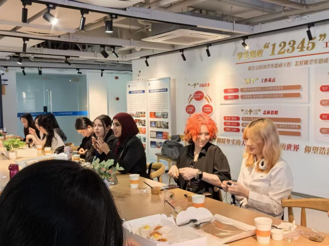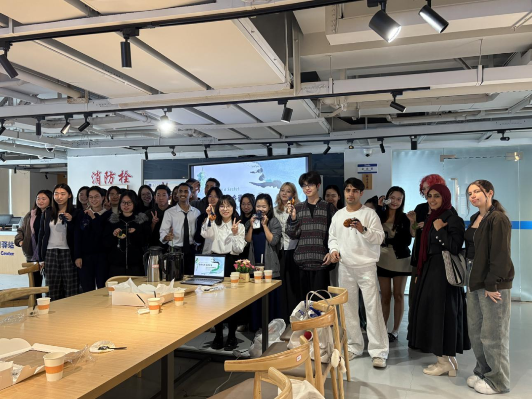 只只香气沁人的香囊在大家手中陆续完成。艾草的清香交织萦绕,春日的气息仿佛凝于方寸之间。同学们手捧自己装好的香囊,彼此分享、互相欣赏。这一枚枚小小的香囊,不仅是文化的载体,更是情感的纽带——跨越国界的真诚与善意,不同文化的碰撞与交融,都在这一刻变得具体而温暖。