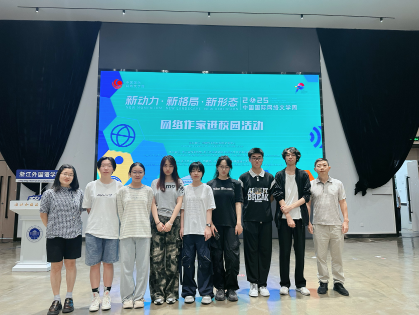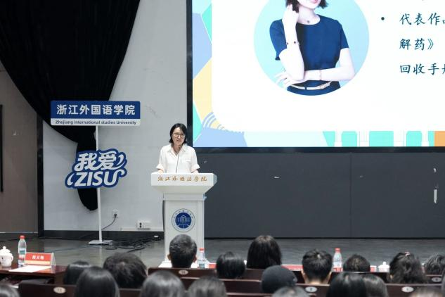近日,由浙江省作家协会、浙江外国语学院、杭州市文学艺术界联合会联合主办的“知名网络文学作家进校园”活动在望C116报告厅举行。英文学院文学与创作系外国文学学科专业负责人潘家云,文学与创作系教学、科研主管张静静带领25英语5班(文学与创作方向)全体新生参加学习。