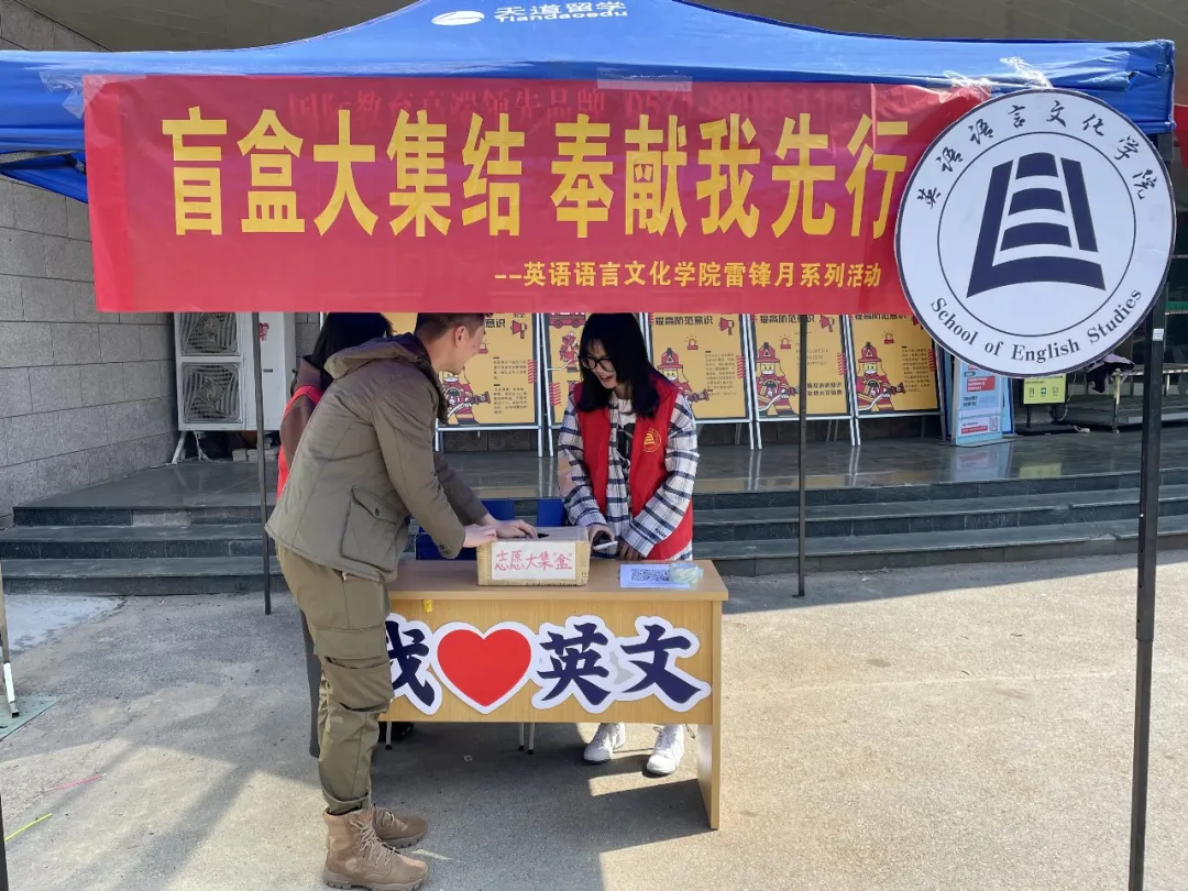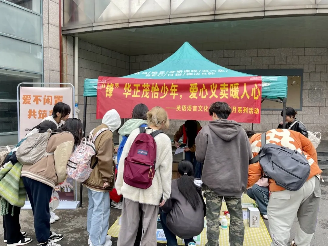 为书写新时代雷锋故事,促进公益事业发展,3月23日,英文学院党员之家在学校和香园餐厅门口举行爱心义卖活动。