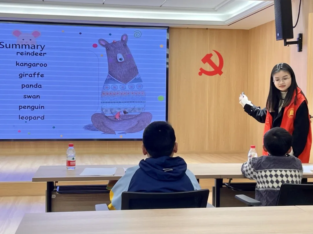 `3月18日,英文学院学子来到了西湖区留下街道屏峰社区,为这里的中小学生提供英语课程辅导。辅导志愿者认真备课以满足不同学段学生的个性化需求,提供了口语纠音、日常口语对话、英语听力训练、英语写作指导、主题词汇学习等众多课程,受到了学生、家长及社区的一致好评。