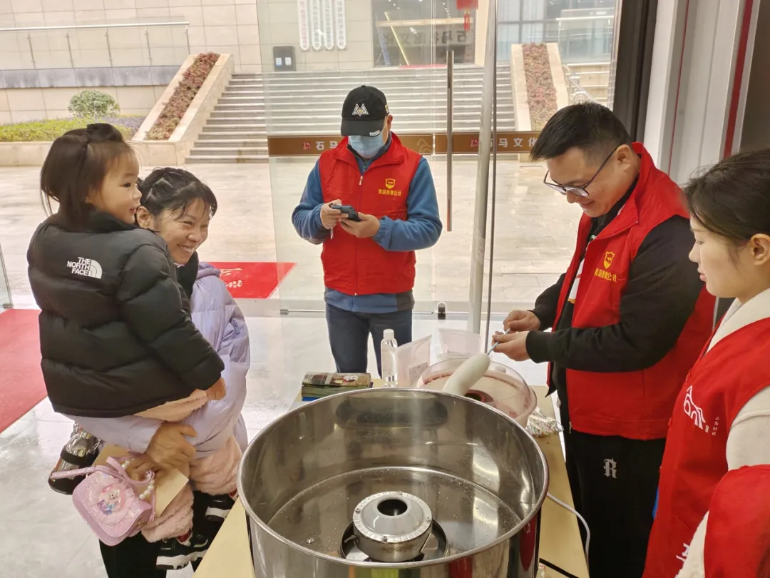 志愿者们协助工作人员为孩子们制作和分发棉花糖,以这种特别的方式在儿童心中播下爱护粮食的种子。与此同时,志愿者们与杭州市西溪医院密切配合,为居民提供血压和血糖检测以及骨科和眼科咨询。